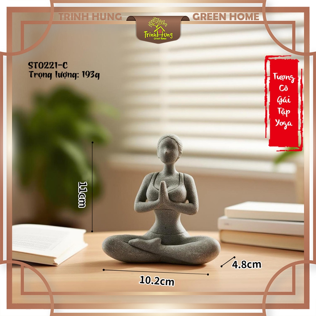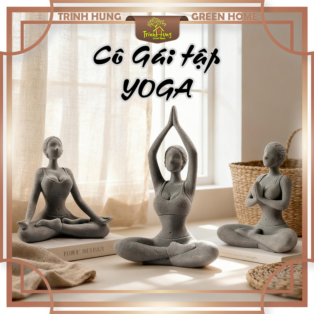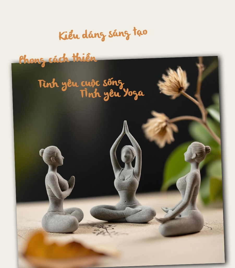 Bộ 3 tượng cô gái tập Yoga đá sa thạch ST0221