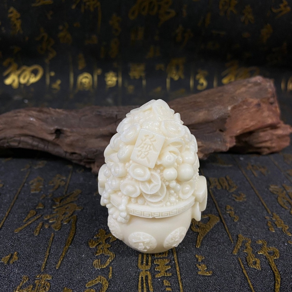 Tượng hũ châu báu chiêu lộc chất liệu quả ngà QNV2058