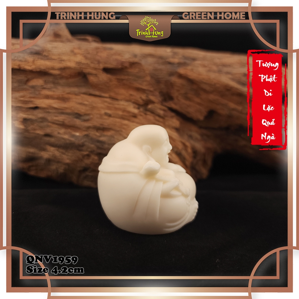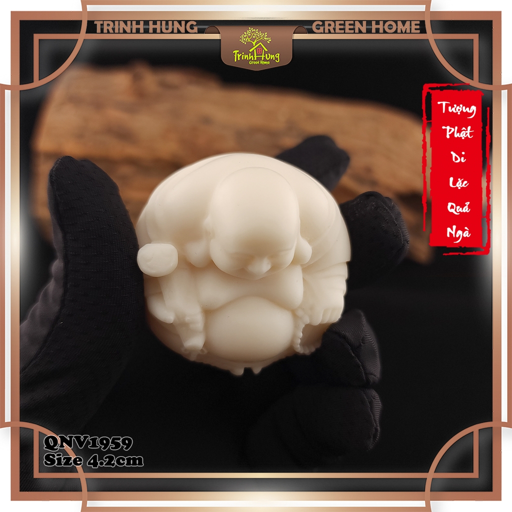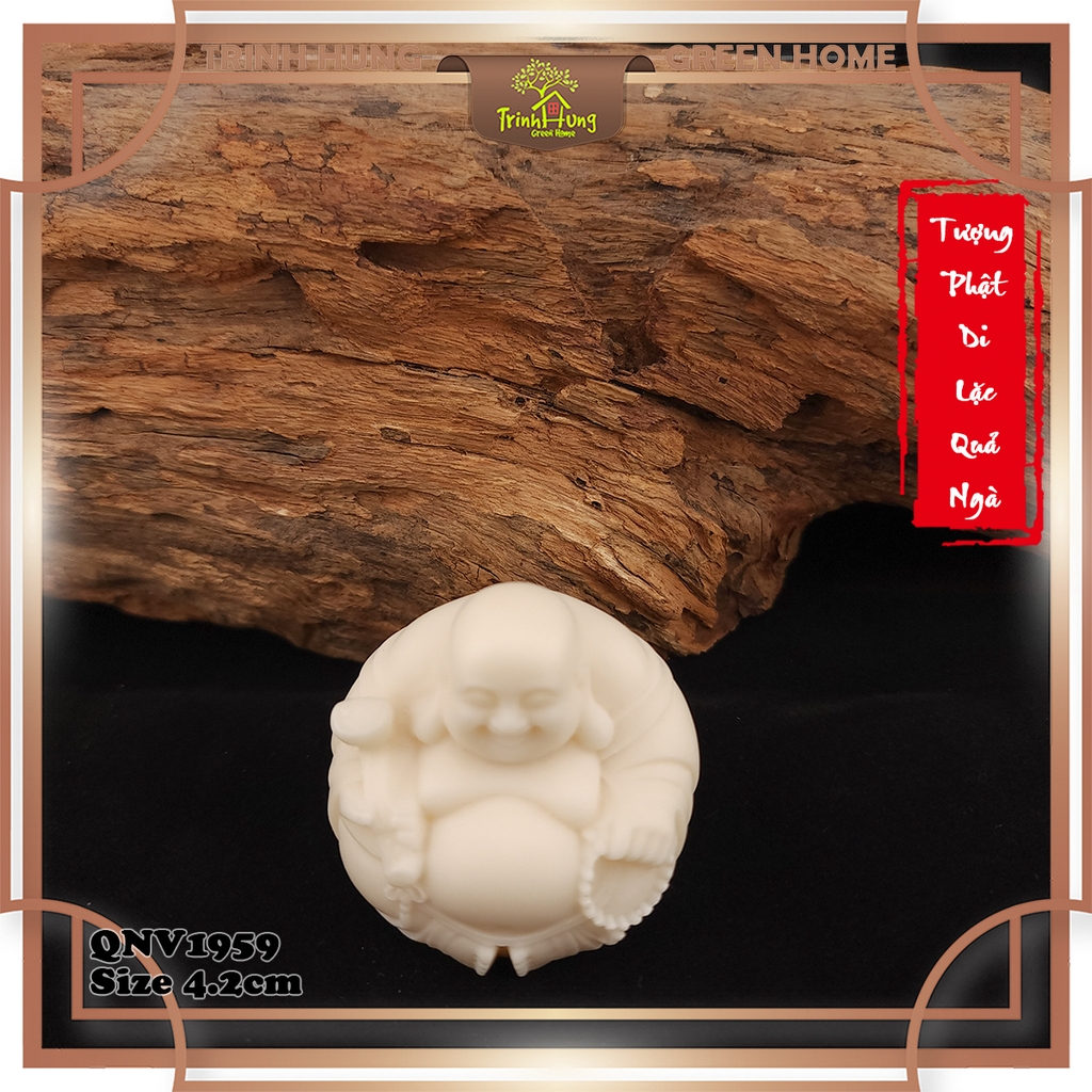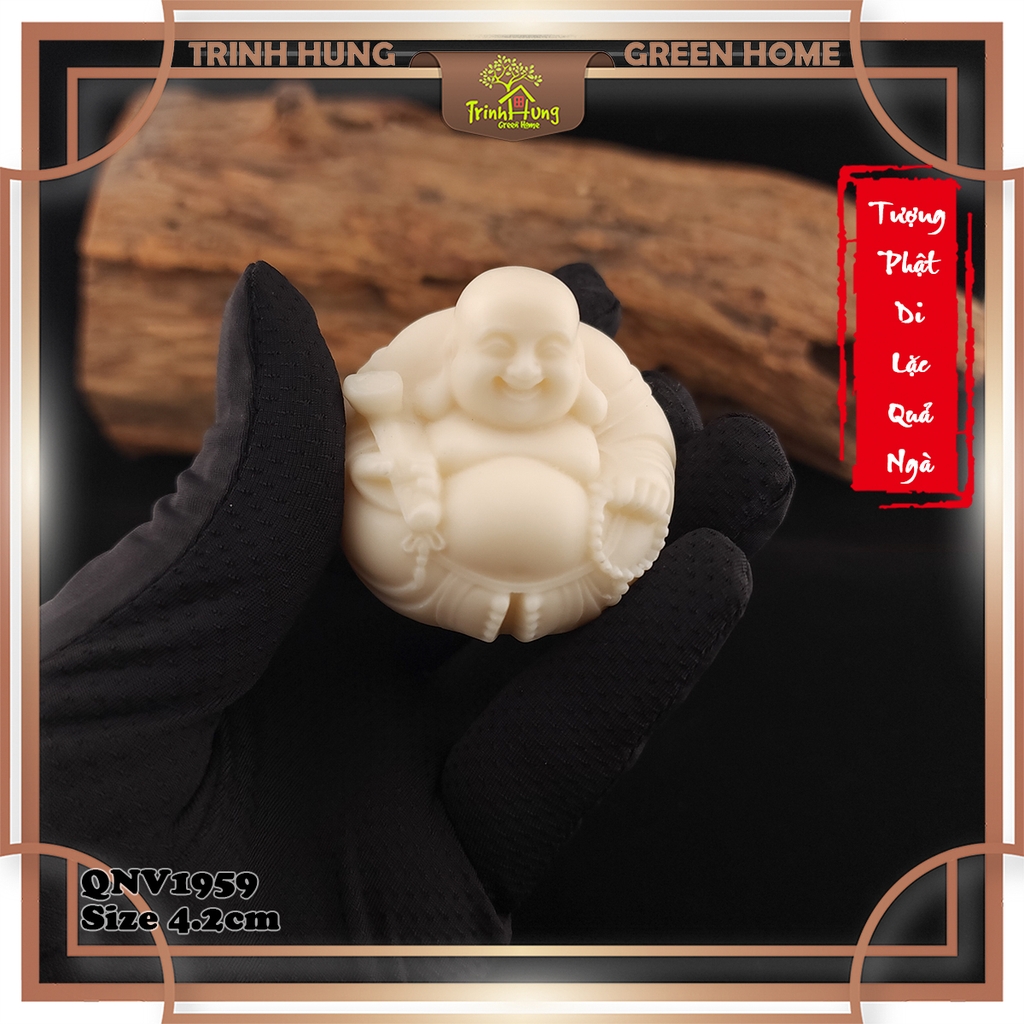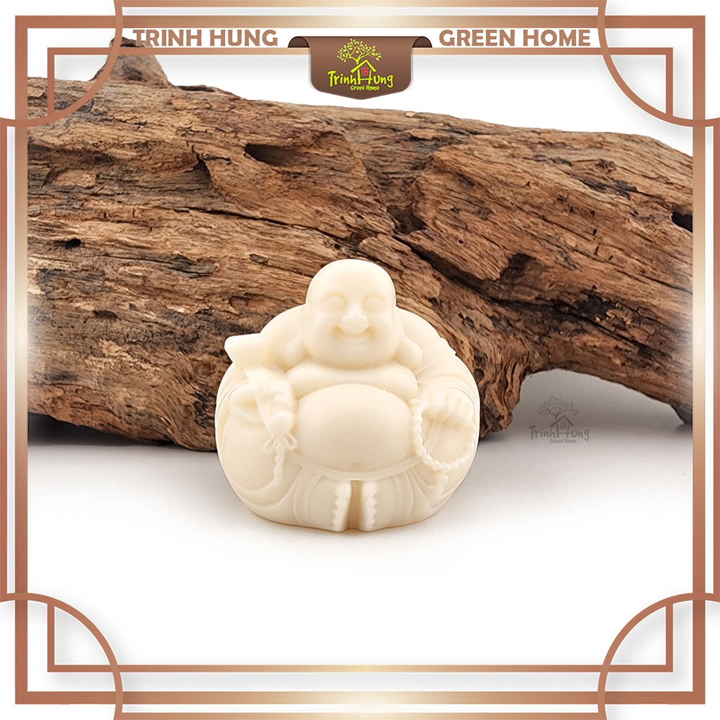 Tượng được làm từ quả ngà v.oi nghiền mịn (là một loại cây cọ sống lâu năm có thể cao tới 20m, nội nhũ bên trong hạt của quả ngà voi có màu trắng ngà, bề mặt mịn màng nhưng chất cứng như đá. Đây là những tính chất rất thanh cao và độc đáo, phù hợp để sử dụng làm các loại mỹ nghệ chạm khắc), kết hợp cùng 1 số phụ gia ép thành khuôn, sau đó được các người thợ thủ công chế tác, chất lượng sản phẩm sắc nét, tượng được cho vào máy đánh bóng nên tượng nhẵn mịn và có độ bóng nhất định