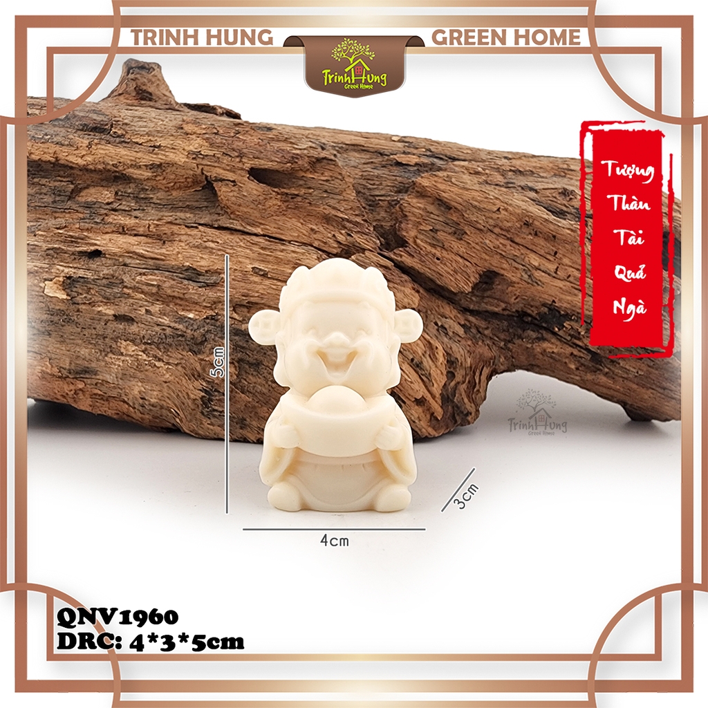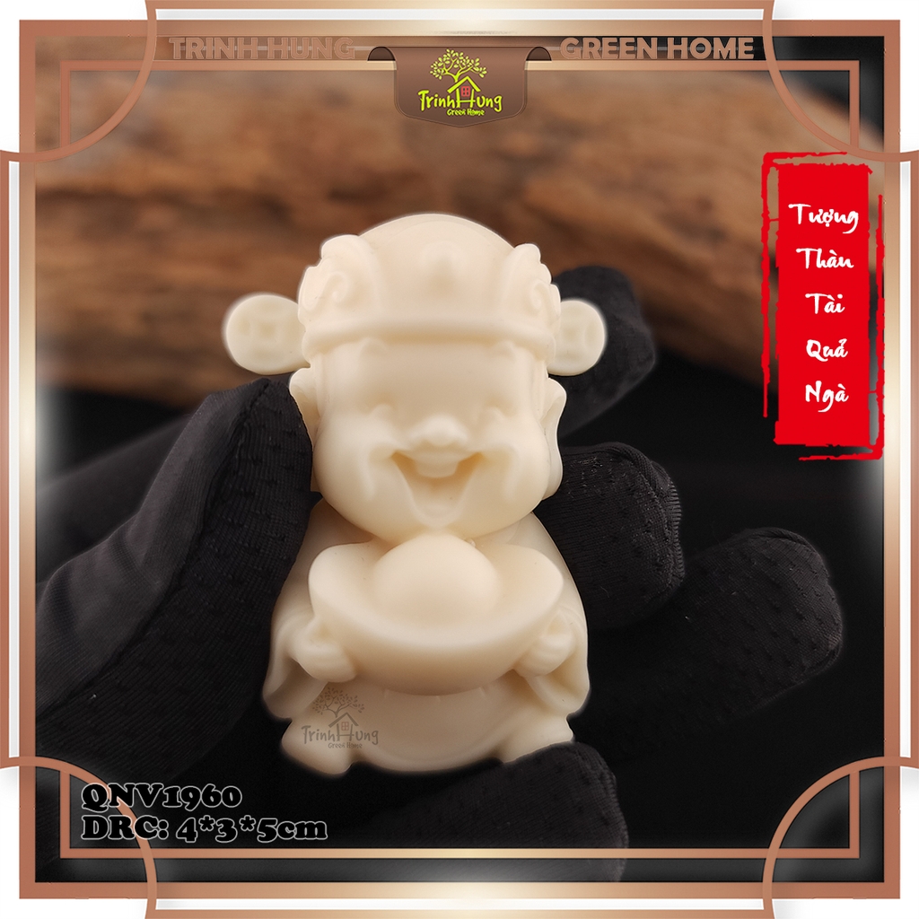 Tượng được làm từ quả ngà v.oi nghiền mịn (là một loại cây cọ sống lâu năm có thể cao tới 20m, nội nhũ bên trong hạt của quả ngà voi có màu trắng ngà, bề mặt mịn màng nhưng chất cứng như đá. Đây là những tính chất rất thanh cao và độc đáo, phù hợp để sử dụng làm các loại mỹ nghệ chạm khắc), kết hợp cùng 1 số phụ gia ép thành khuôn, sau đó được các người thợ thủ công chế tác, chất lượng sản phẩm sắc nét, tượng được cho vào máy đánh bóng nên tượng nhẵn mịn và có độ bóng nhất định