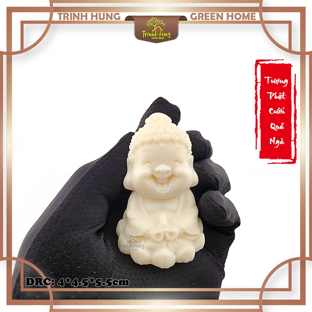 Tượng được làm từ quả ngà v.oi nghiền mịn (là một loại cây cọ sống lâu năm có thể cao tới 20m, nội nhũ bên trong hạt của quả ngà voi có màu trắng ngà, bề mặt mịn màng nhưng chất cứng như đá. Đây là những tính chất rất thanh cao và độc đáo, phù hợp để sử dụng làm các loại mỹ nghệ chạm khắc), kết hợp cùng 1 số phụ gia ép thành khuôn, sau đó được các người thợ thủ công chế tác, chất lượng sản phẩm sắc nét, tượng được cho vào máy đánh bóng nên tượng nhẵn mịn và có độ bóng nhất định