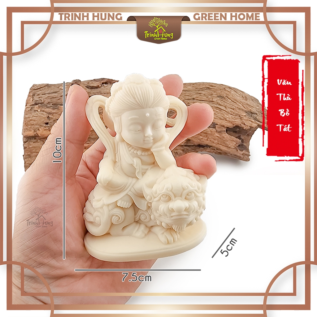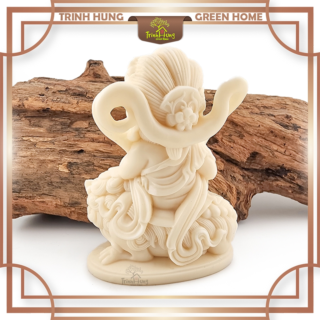 Tượng được làm từ quả ngà v.oi nghiền mịn (là một loại cây cọ sống lâu năm có thể cao tới 20m, nội nhũ bên trong hạt của quả ngà voi có màu trắng ngà, bề mặt mịn màng nhưng chất cứng như đá. Đây là những tính chất rất thanh cao và độc đáo, phù hợp để sử dụng làm các loại mỹ nghệ chạm khắc), kết hợp cùng 1 số phụ gia ép thành khuôn, sau đó được các người thợ thủ công chế tác, chất lượng sản phẩm sắc nét, tượng được cho vào máy đánh bóng nên tượng nhẵn mịn và có độ bóng nhất định